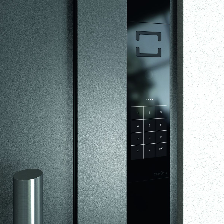 В сфере контроля доступа Schüco предлагает решения как для жилых зданий повышенной комфортности, так и крупных объектов. Для управления дверями используются устройства считывания карт, клавиатура или биометрические системы контроля доступа (Fingerprint).