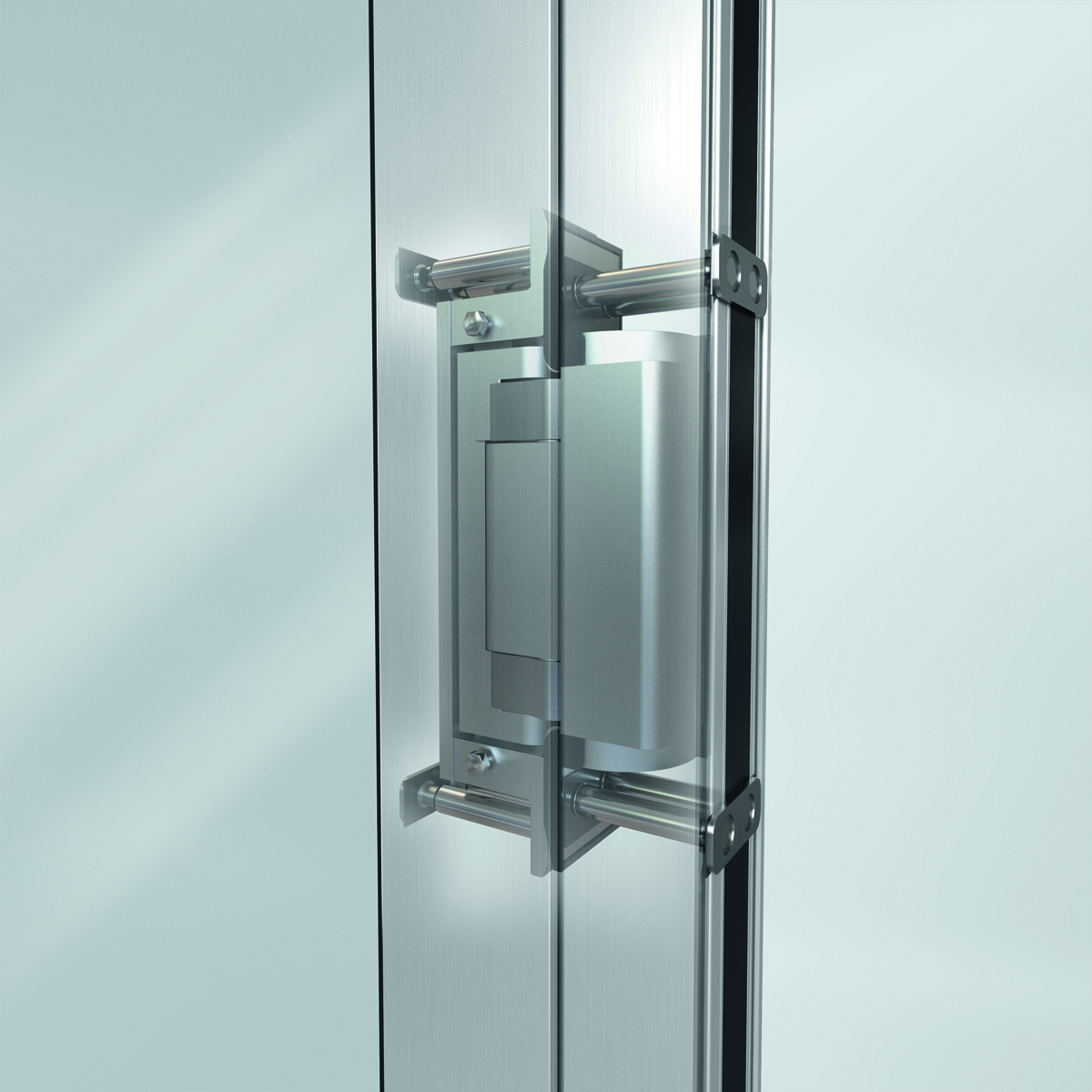 Роликовые дверные петли Schüco отличаются особой элегантностью. Внутри конструкции корпус петли и крепежные элементы гармонично сливаются с вертикальными линиями профилей, по желанию можно подобрать петли под цвет профилей.