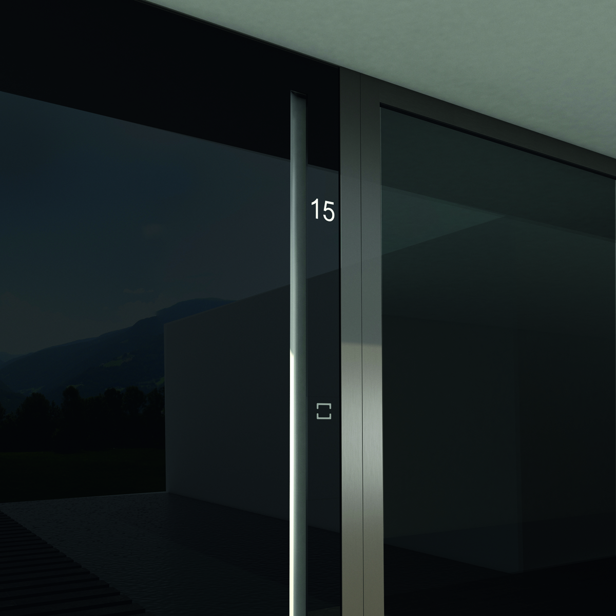 Звонок, переговорное устройство и видеокамера скрыто интегрированы в профиль. Благодаря системе управления и дверной коммуникации дверь в каждой квартире отличается индивидуальным и эффективным набором функций. Придать индивидуальный характер своей двери возможно также за счет использования системы доступа по отпечатку пальца и дополнительных модулей: датчика движения, бесконтактного выключателя, светодиодного прожектора и таблички с номером дома / квартиры. Система дверной коммуникации предлагается с осени 2013 года.