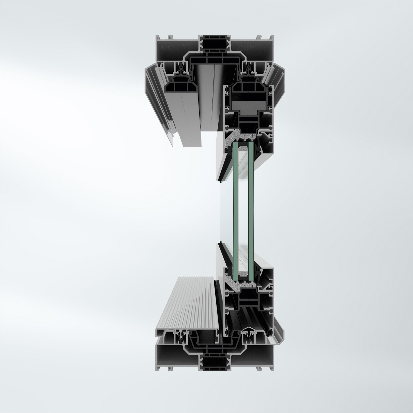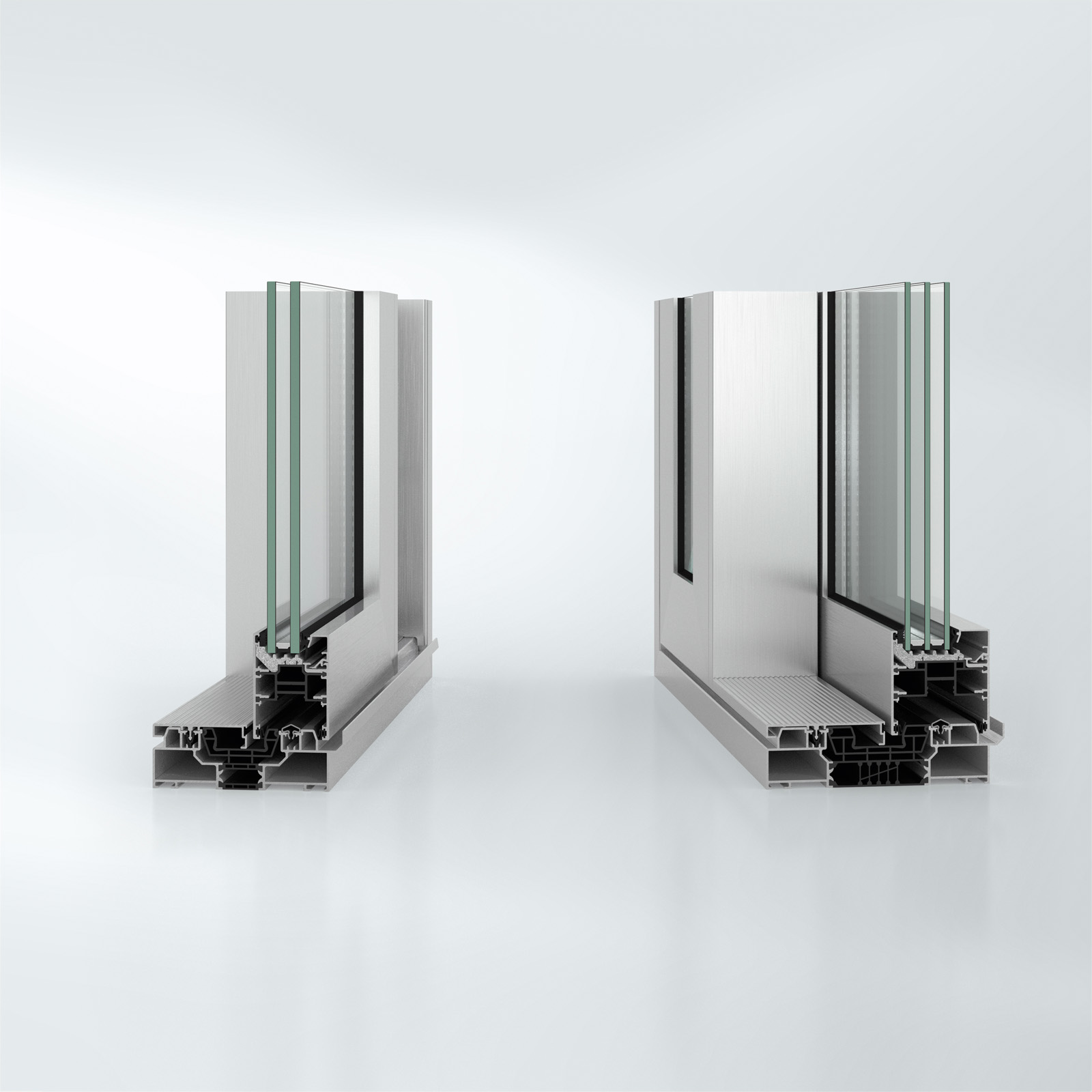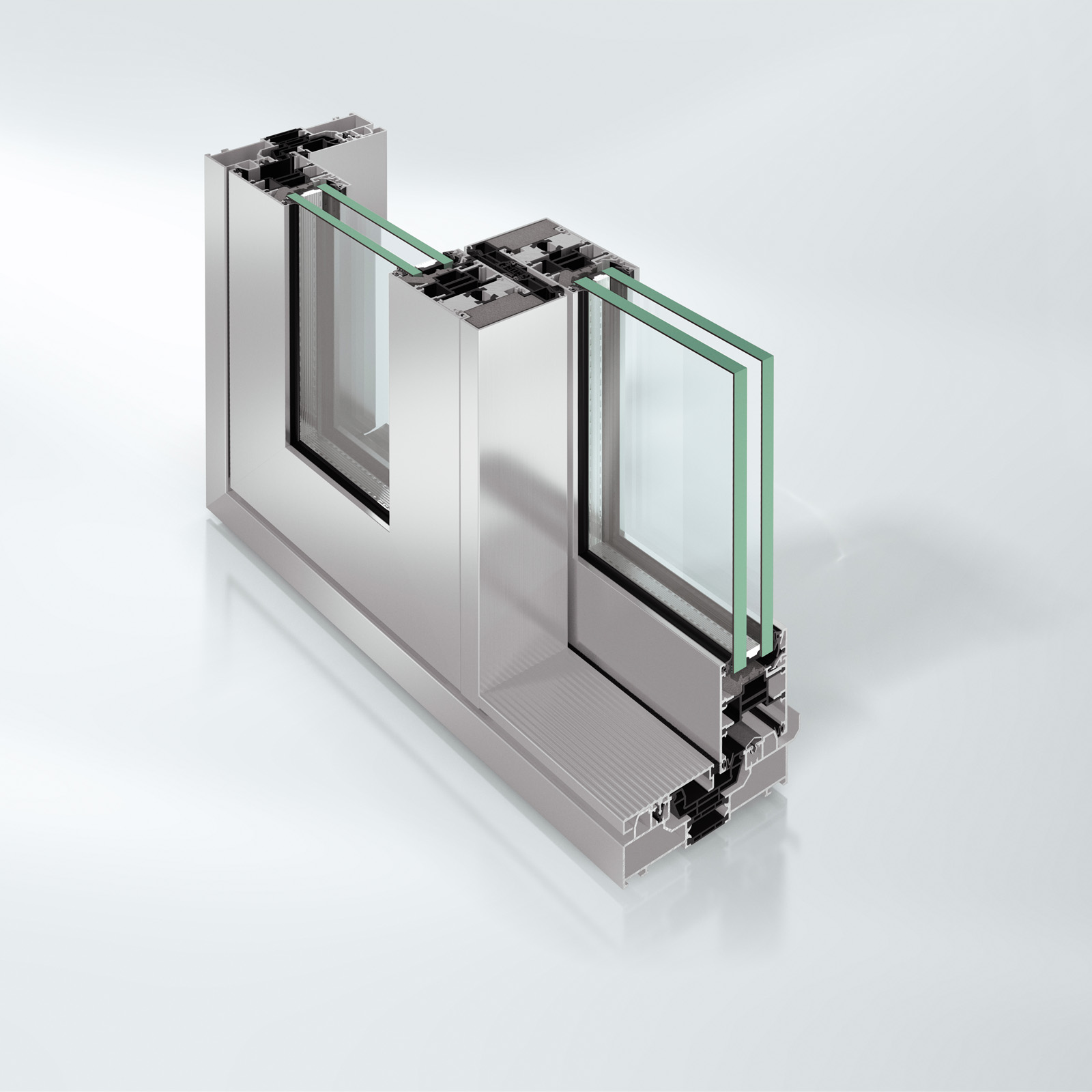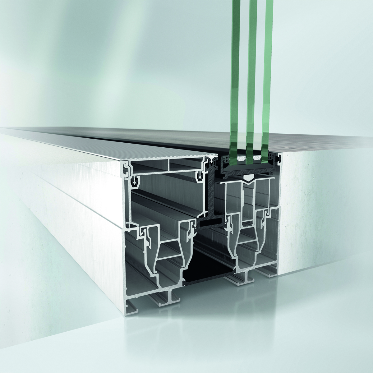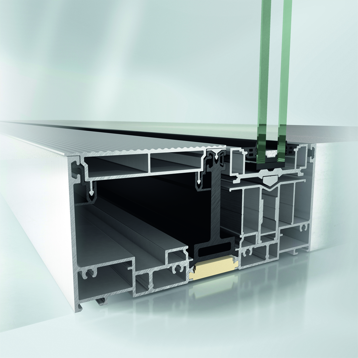 Инновационное трехполозное решение направляющей позволяет изготавливать крупногабаритные раздвижные конструкции, обеспечивающие максимальное пропускание света в помещение. Возможно использование стеклопакета толщиной до 60 мм. Комбинация рамы, установленной вровень с полом, со скрыто интегрированными в профиль системами приводов и блокировки створок гарантирует высочайший комфорт при эксплуатации.