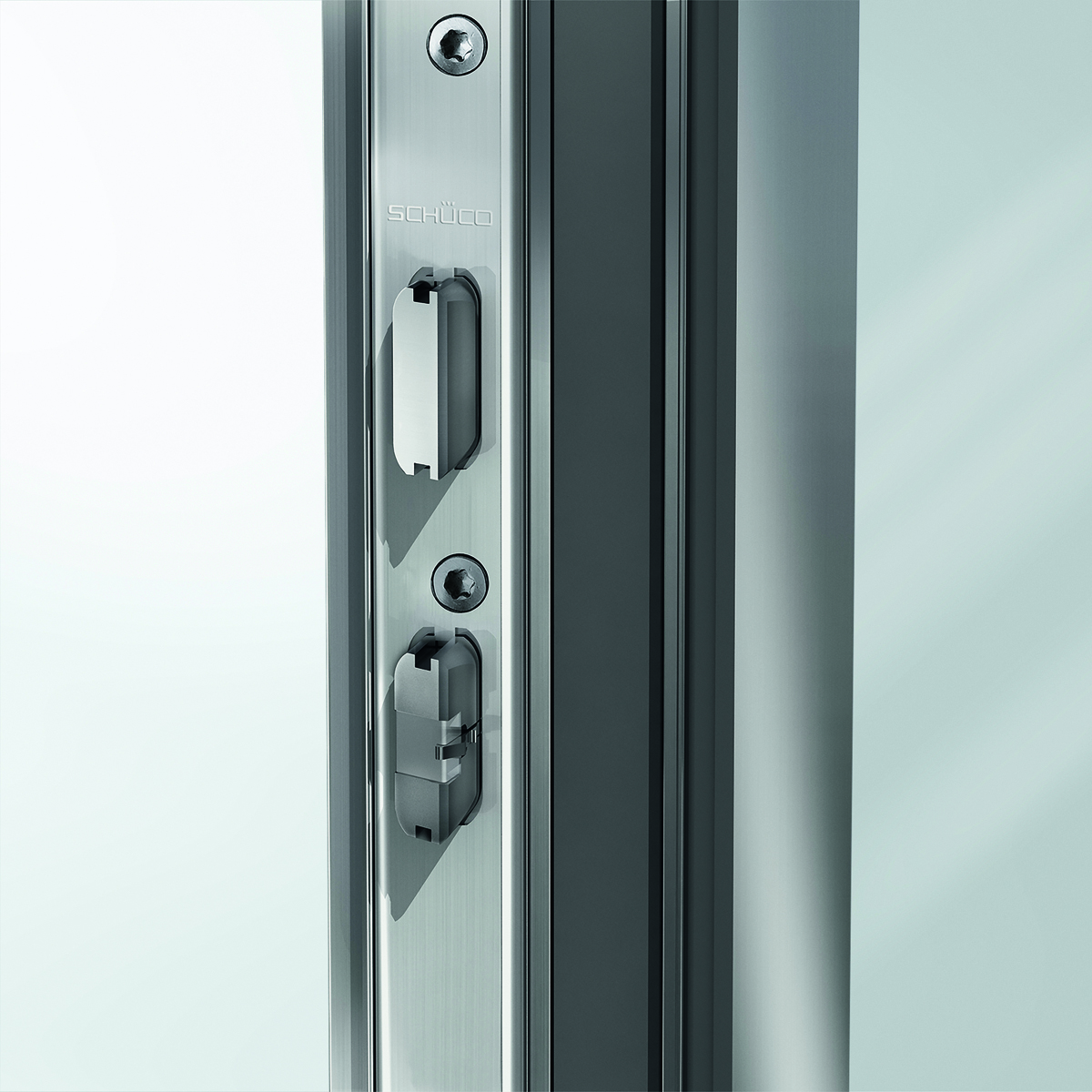 Замок повышенной комфортности Schüco используется как в стандартной дверной системе Schüco ADS, так и в дверной серии ADS HD (Heavy Duty) в одно- и двухстворчатых распашных дверях и обеспечивает безопасность до класса RC 3.