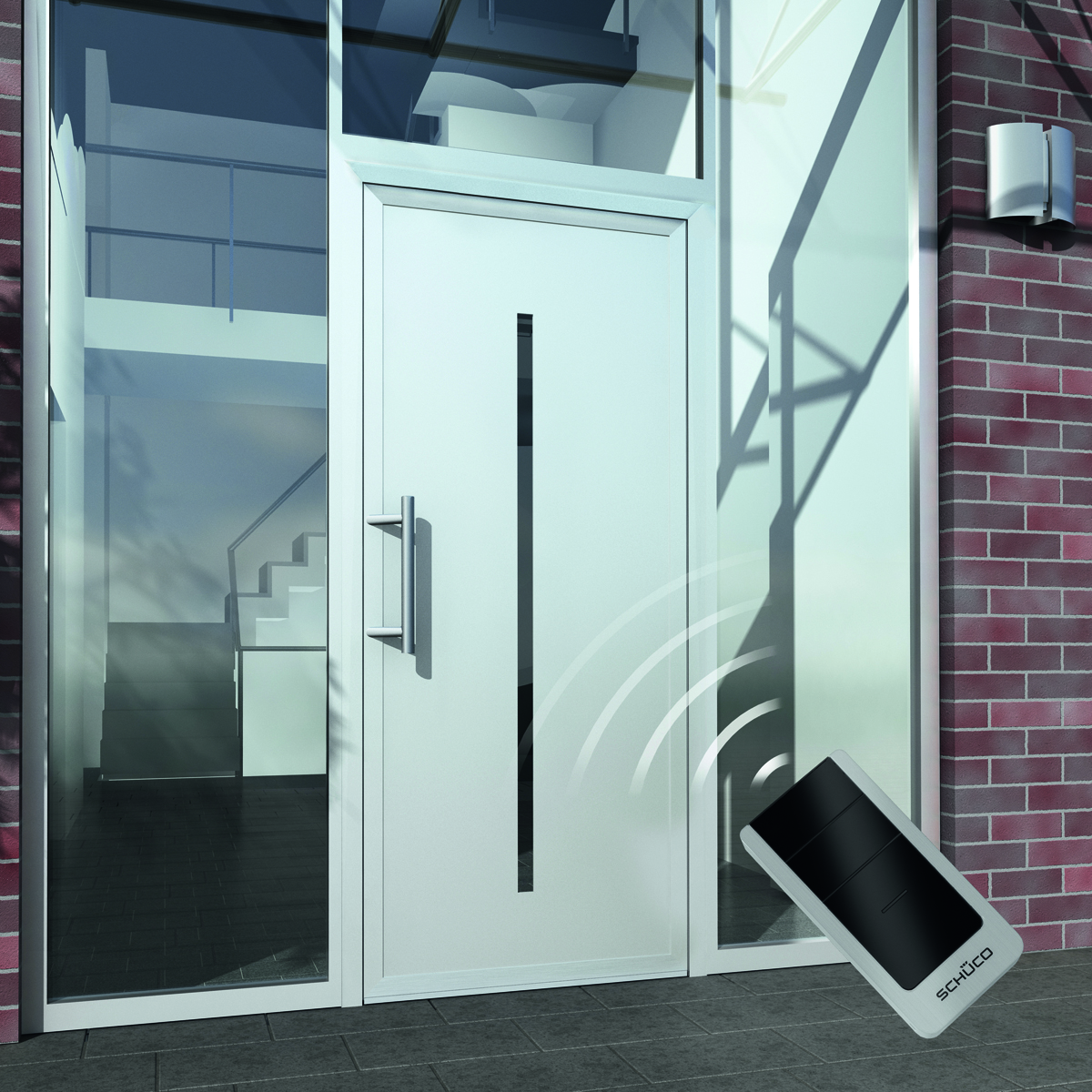 Управлять окнами, фрамугами и наружной солнцезащитой стало необыкновенно просто благодаря радиоуправляемым системам Schüco. Открывание, закрывание, проветривание и затенение – просто и надежно по нажатию кнопки. Передатчиками могут быть новая ручка Schüco AvanTec или компактный переносной пульт управления, который подходит и для управления автоматическими поворотными дверями. В качестве приемника используются, например, встроенная в профиль фурнитура Schüco TipTronic для окон и фрамуг или замок Schüco SafeMatic для дверей.